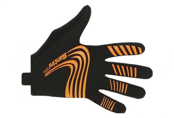 Les gants de VTT à doigts longs de Santini sont dotés d’un imprimé en silicone antidérapant sur la paume et le bout des doigts.